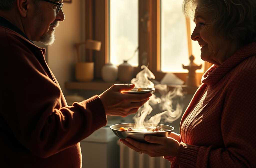 Разогрели еду в кастрюльке, поставили чайник на раскалённую печную плиту. Ольга Герасимовна стояла у стола и накладывала кашу. Толя окинул её взглядом, удивляясь переменам: худенькая, седая, беззубая, небольшого роста, с невидящими глазами, улыбающимся лицом и обожжёнными пальцами именно она была его мамой. В его сознании пробежало течение времени, и фигура матери начала блекнуть, растекаясь в небытие. Толя резко откинул голову, прогоняя видение, и спросил: