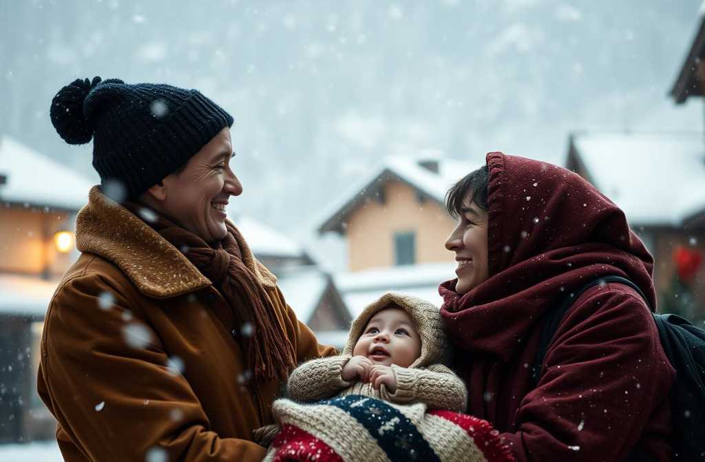 Тихий смех их детей смешивался со звоном колокольчиков, а вдалеке горы отражали свет вечерних фонарей.