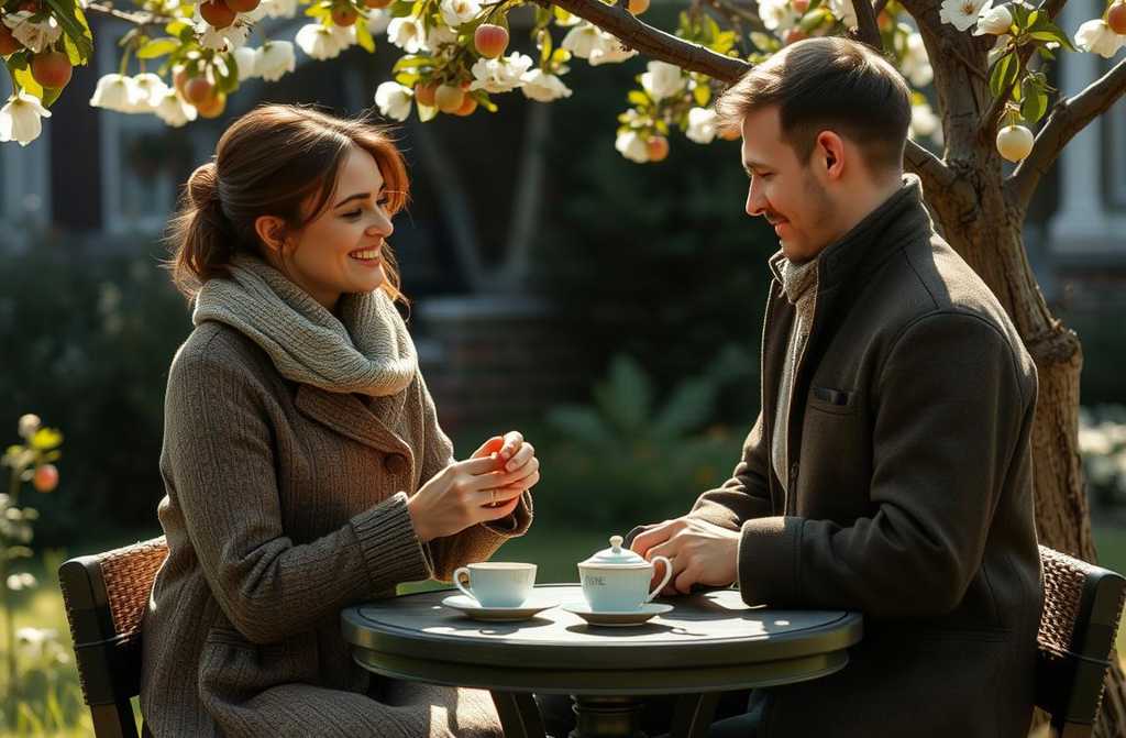 Вдруг услышала тихие голоса за садом. Под старой яблоней они сидели: Николай поставил маленький стол, накрыл белой скатертью, стоял самовар, дымок вьётся. Злата в новом голубом платье, сияющая, а Николай на коленях перед ней ставит простое золотое кольцо на палец. Ни гостей, ни криков «горько», лишь шелест листьев, жужжание пчёл, тихий шёпот.