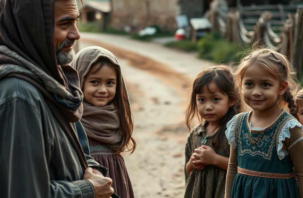 «Je mappelle Hélène, jai trois ans,» dit la petite en montrant trois doigts. «Voici Anaïs, cinq ans. Au milieu, Renée, sept ans. Ensuite Valérie, huit ans. Et la plus grande, Danièle, dix ans, elle se fâche facilement.» Ernest, qui sapprêtait à reprendre le cheval, ajouta : «Danièle nest pas en colère, elle est juste triste de ne plus voir sa mère.»