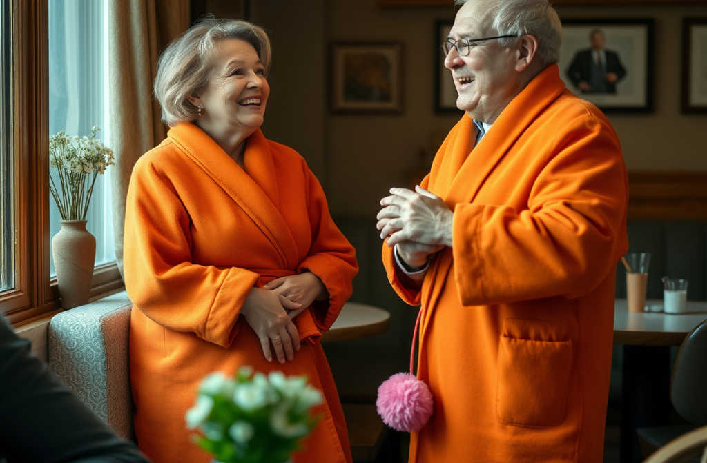 When I walked into the restaurant wearing a bright orange terrycloth dressing gown and fluffy pink pom-pom slippers, the waiter nearly dropped his tray. His eye twitched as he tried to decide whether I was a madwoman or part of some elaborate prank. I just smiled sweetly and said, «Please take me to the table reserved under the name of William Turner. Its his fiftieth birthday celebration.»