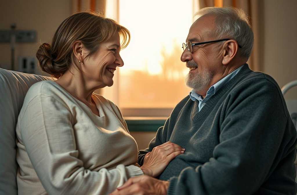 Capucine Ondine sassoit au chevet, touche sa main avec hésitation. Jean, les larmes de joie, caresse son visage.