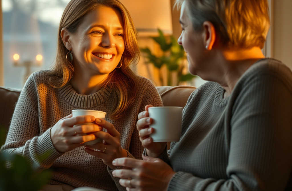 Любовь внимательно слушает и кладёт руку Надежде на ладонь.