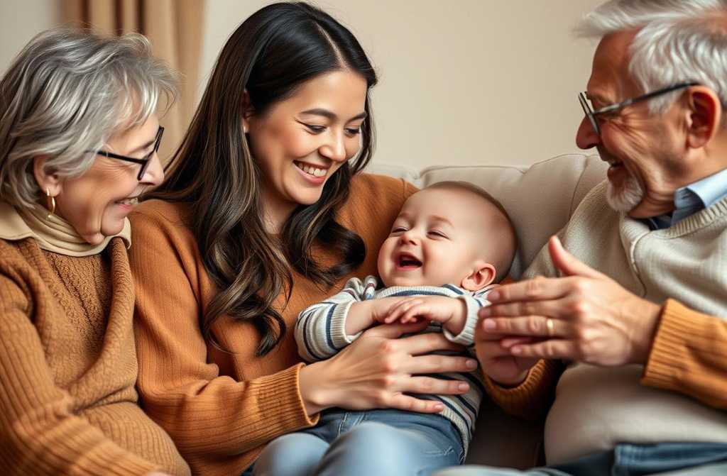 Лариса наконец отдыхает на диване с чаем, наблюдая, как отец строит башни, а мама кормит внука фруктовым пюре, напевая смешные потешки.