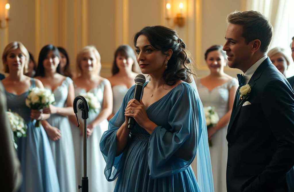 Dans la salle, un étrange silence sinstalle. La musique sinterrompt, les invités se lancent des regards interrogateurs, certains fixent le sol comme sils pouvaient y échapper à la tension. La mariée, radieuse et émue, reste pétrifiée, les yeux remplis dincompréhension.