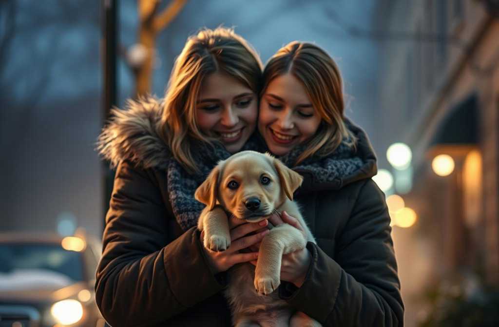 Под машиной послышалось приглушённое поскуливание. Пробрался крошечный, дрожащий, мокрый щенок, покрытый грязью, словно из старой сказки.
