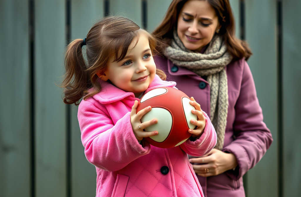 За окном девчушка в розовой куртке наконец отбирает мяч и убегает, прижимая его к груди. На её лице радость победителя, она отвоевала своё.