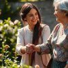 Joyeux anniversaire, Gisèle, offre Manon un petit bouquet de marguerites du jardin. Santé à vous. Prenez place.