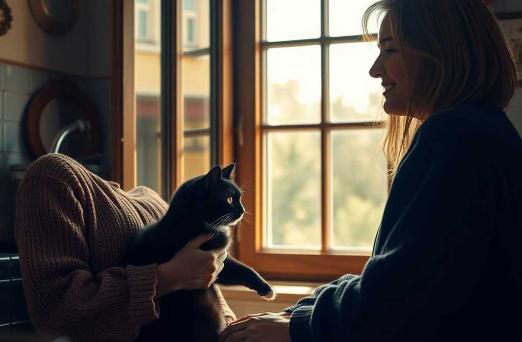 В последний вечер я залила миску кормом, села за чай. Вдруг кот осторожно прошёл в кухню, мяукнул, потерся о ноги, осторожно прыгнул ко мне и, замурлыкав, устроился на коленях.