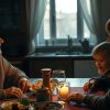 Когда все собрались за столом под мягким светом настольной лампы, дождь барабанил по подоконнику особенно громко, подчёркивая замкнутость нашего маленького мира в ноябрьской непогоде.