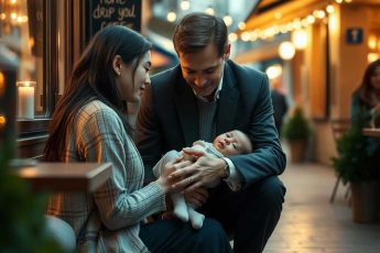 Elle sest assise près de sa table en terrasse, discrète comme un souffle, son nouveau-né blotti contre elle.