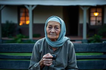 La vieille dame sur le banc devant la maison qui nétait plus la sienne. Grand-mère Élodie était assise